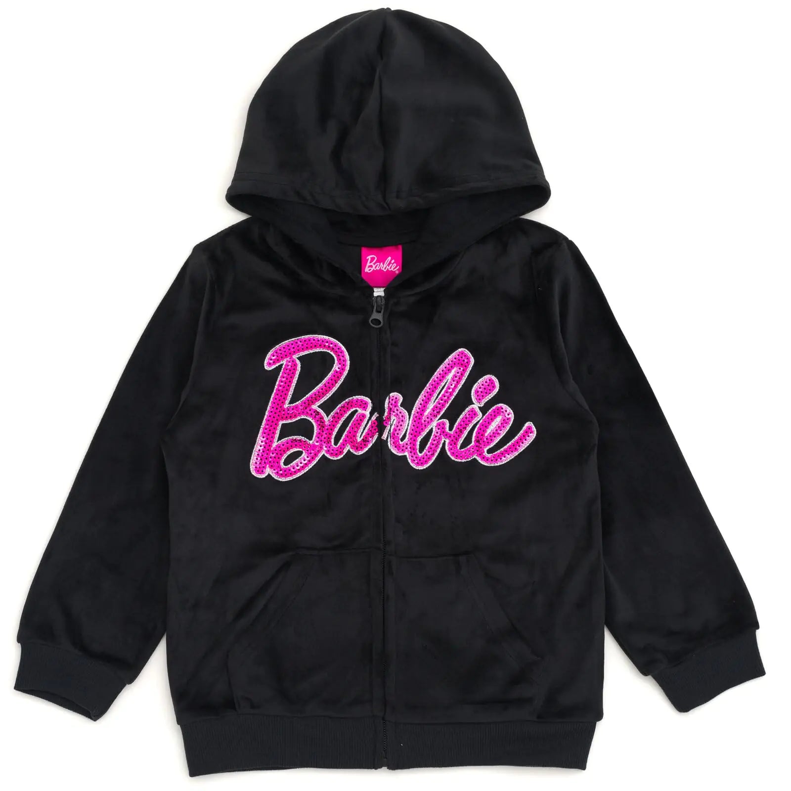 Barbie Big Girls Velour Matching Family Zip Up Hoodie Kids 10-12 Black